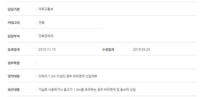 다락이란 단어가 건축법상에서 설명되어있지 않지만, 국토교통부 질의회신을 일반적으로 다락은